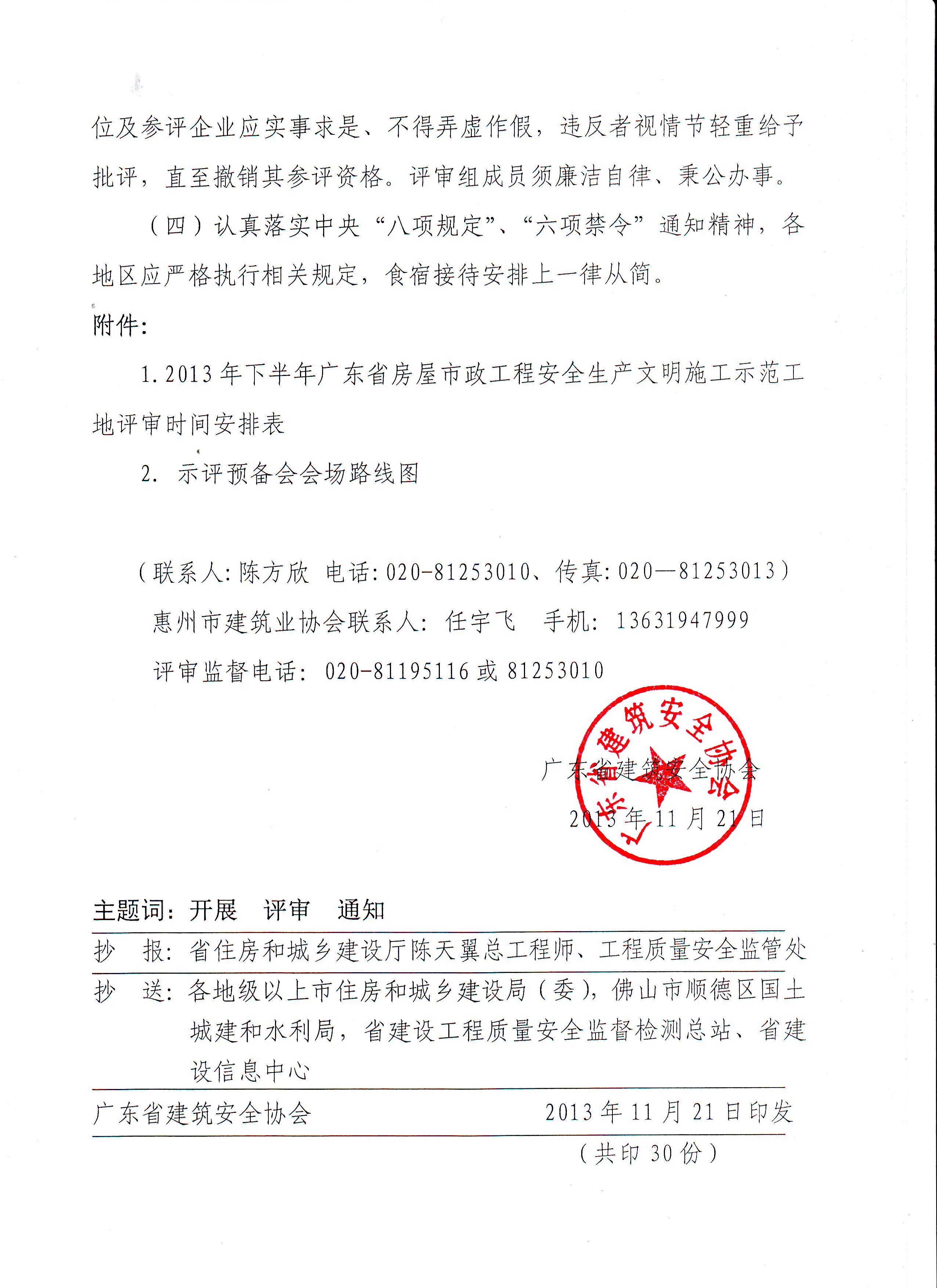 粤建安协〔2013〕027号 关于开展2013年下半年“广东省房屋市政工程安全生产文明施工示范工地”评审活动的通知