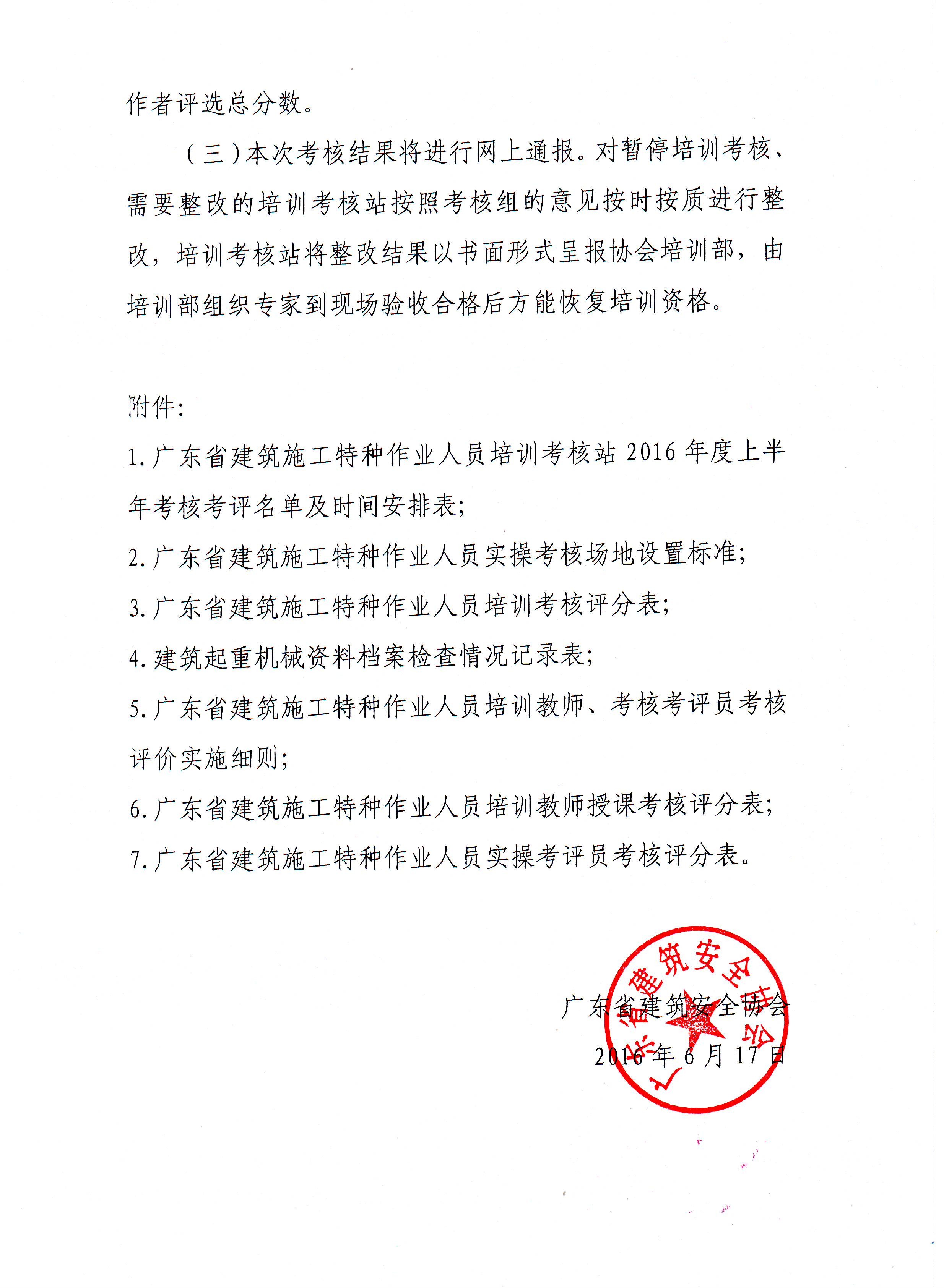 1.广东省建筑施工特种作业人员培训考核站2016年度上半年考核考评名单及时间安排表;