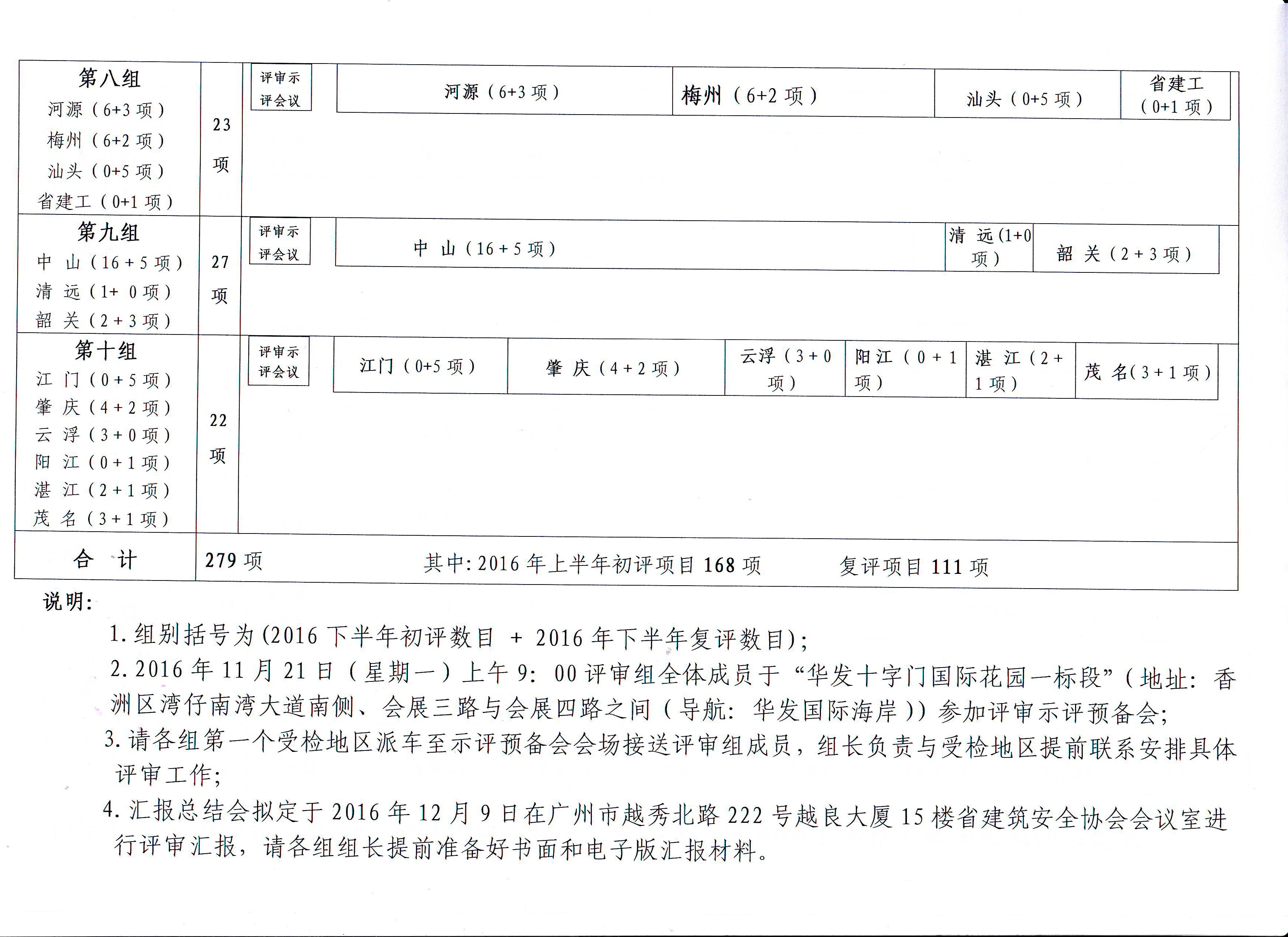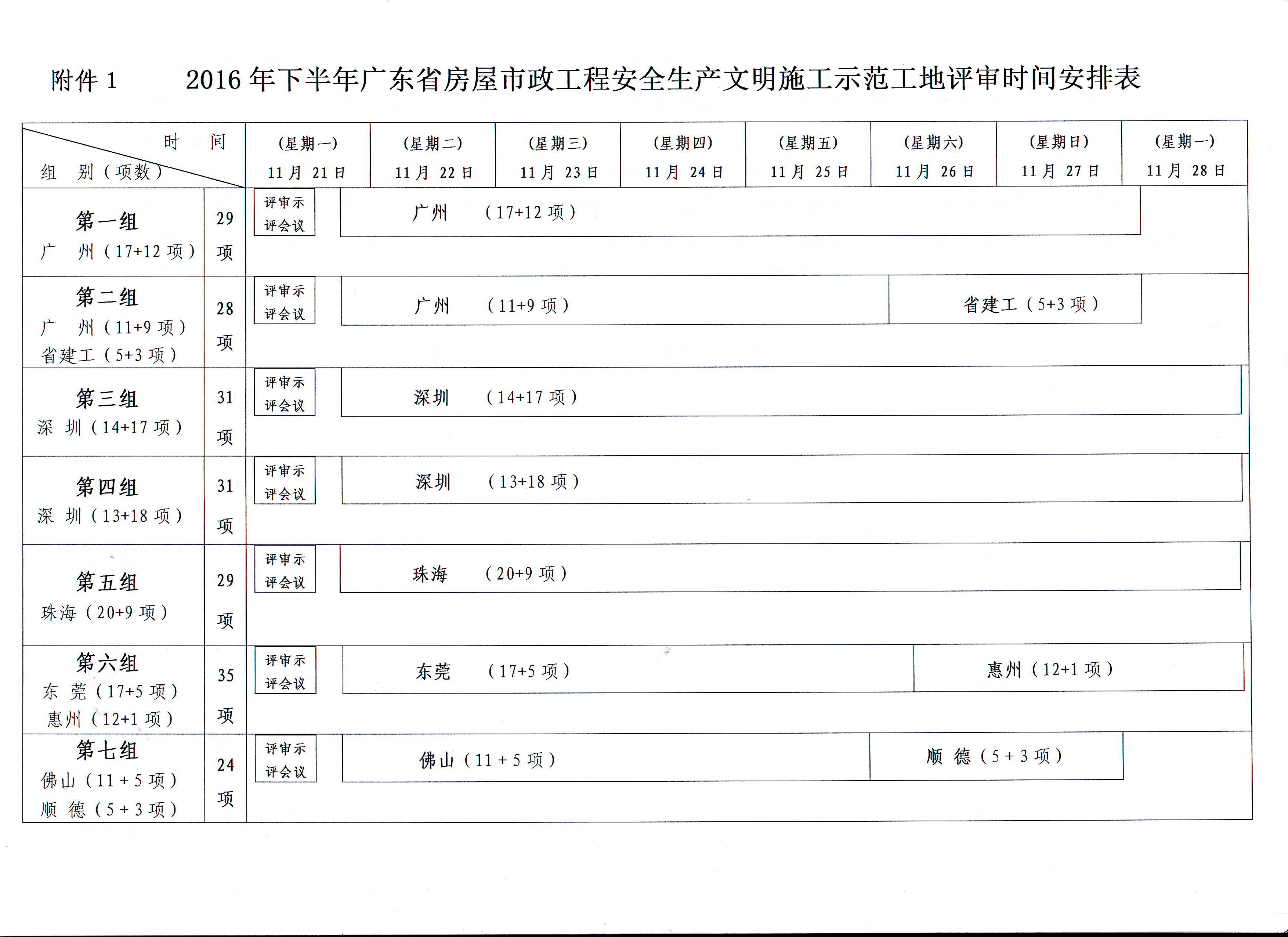 1.2016年下半年广东省房屋市政工程安全生产文明施工示范工地评审时间安排表;