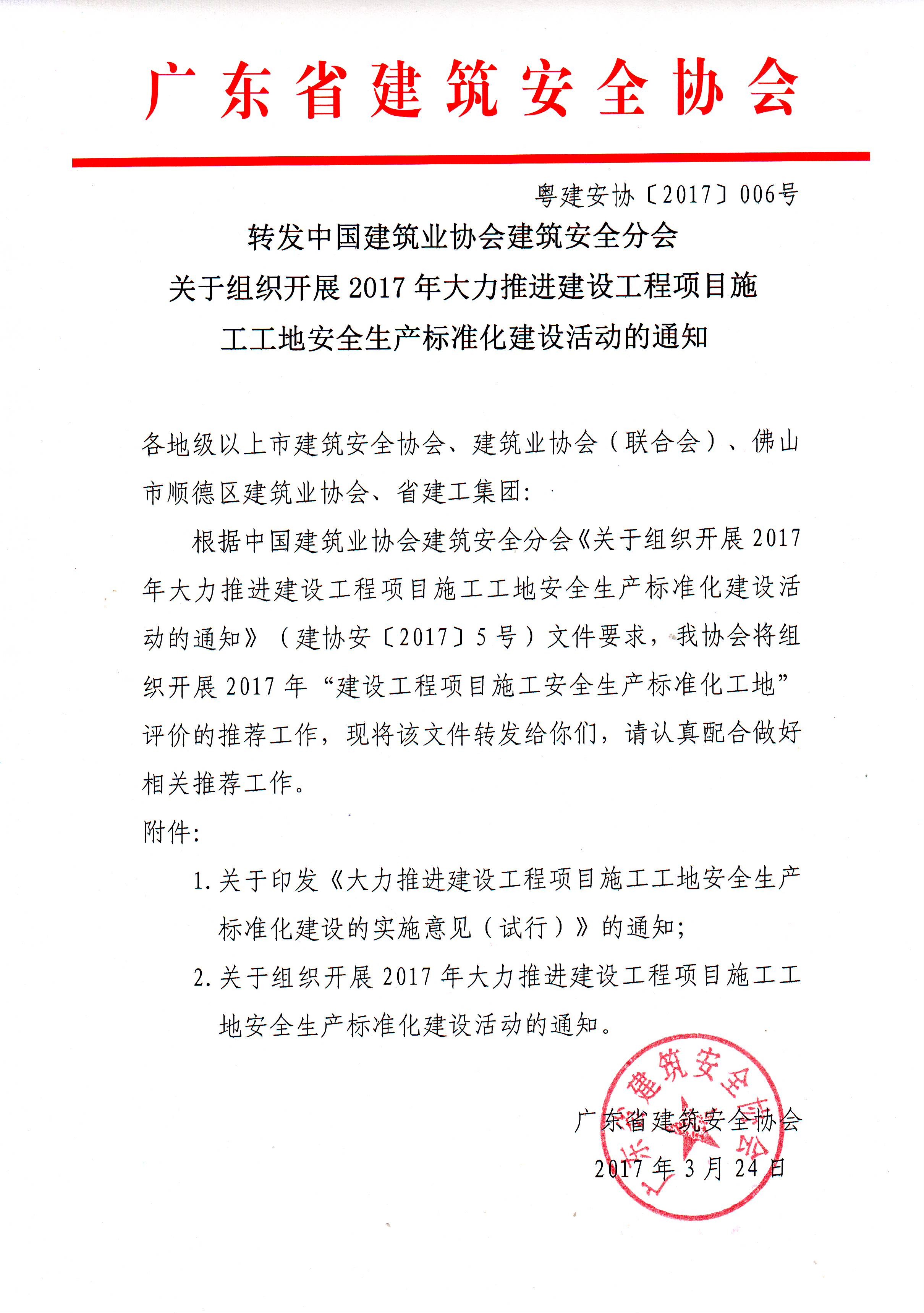 2.关于组织开展2017年大力推进建设工程项目施工工地安全生产标准化建设活动的通知。